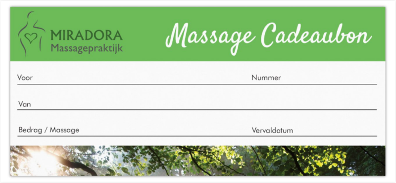 Een massage is fijn om te ontvangen maar zeker ook om te geven. Dat kan heel simpel: met een massage cadeaubon van Miradora.